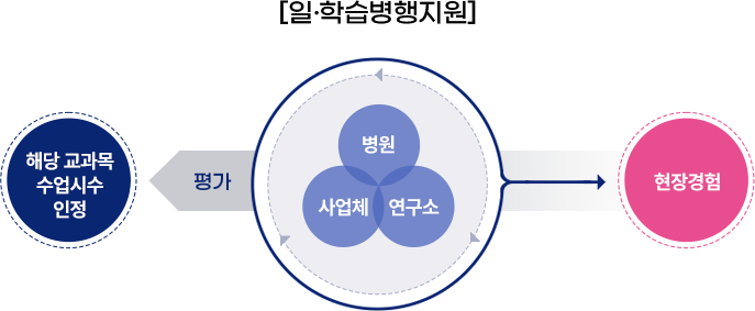 국내·외 다른 학교 · 연구기관 또는 산업체 등에서 학습 · 연구 · 실습 · 근무한 사실이 인정되는 경우 학기당 총 15주 교육 중 최대 7주까지 인정 가능